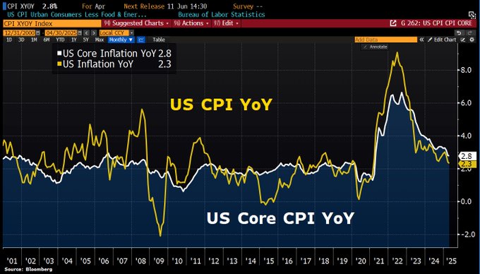 美国劳工统计局周二公布的数据显示,美国4月份CPI环比上升0.2%,同比上升2.3%,分别低于了市场预期的0.3%和2.4%。剔除波动较大的食品和能源价格后的核心CPI环比上涨0.2%,同比上涨2.8%,与预期一致。其中2.3%的CPI以及2.8%的核心CPI同比涨幅,都是2021年初以来的最低值。